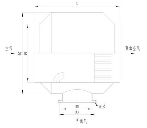 本產物由內、外筒體,導流筒和夾雜單位構成(見下圖)。氧氣進入兩筒體之間的空間后經導流筒引入氛圍流中完成初混,而后進入夾雜單位,被屢次切割分流,從管尾出來的已是平均夾雜的富氧氛圍。